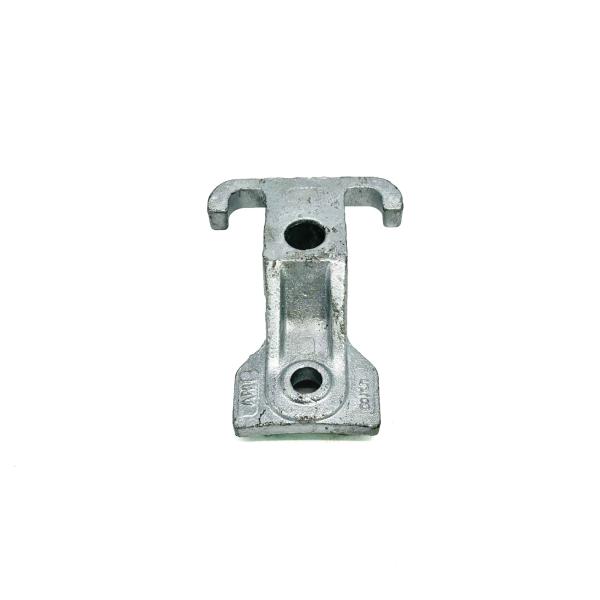 Yokelink Guy Hook used in down or span guy application.Spurs resist down slotting.The overturning action is resisted by the wide lower curved heeel pad. Hot dipped galvanized per ASTM